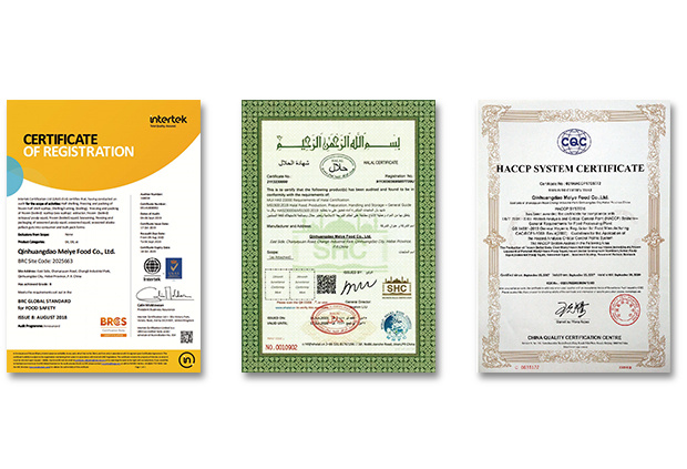 美燁所用設備設施均按出口食品生產企業注冊衛(wèi)生規(guī)范要求設計安裝,本公司已經通過美國HACCP、英國BRC、清真HALAL認證,并在美國FDA、歐盟、俄羅斯等注冊備案,現...